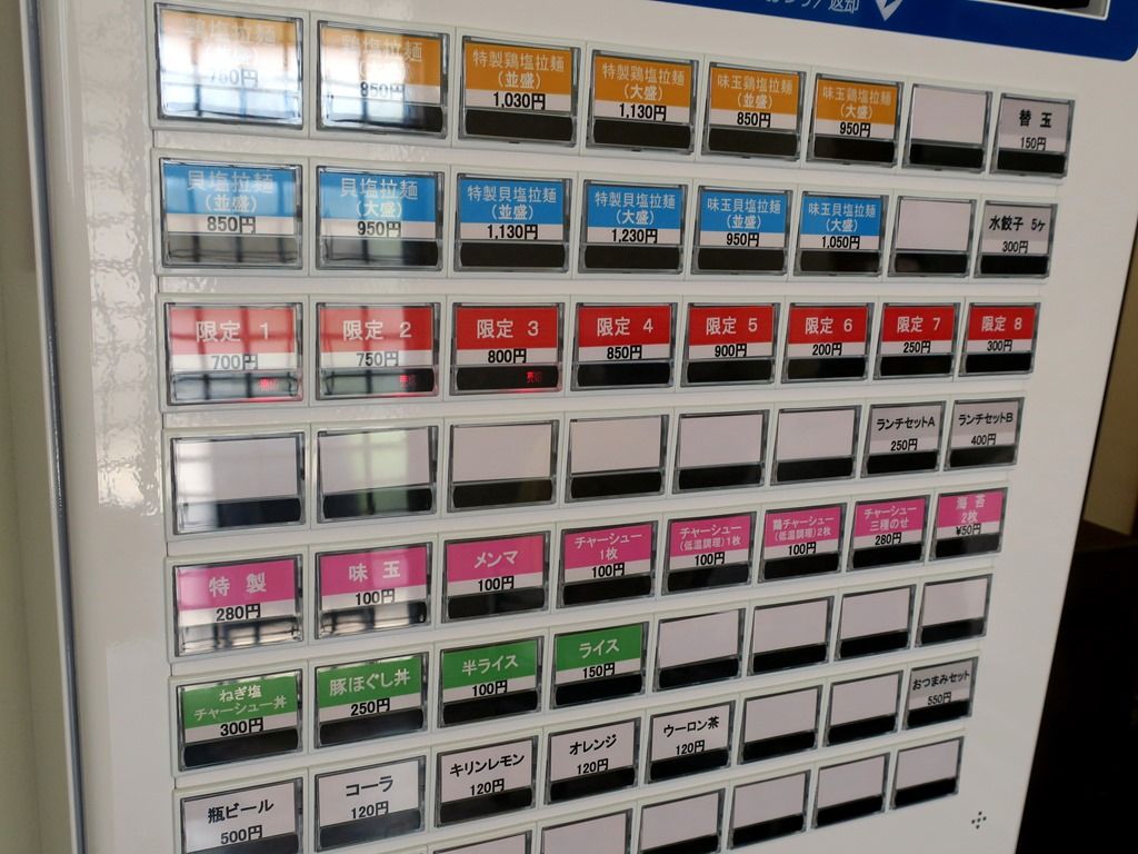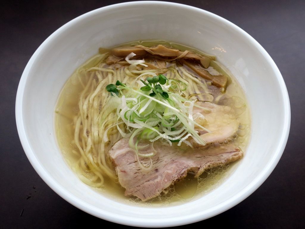 「鶏塩拉麺」。券売機では最上段左端メニュー。