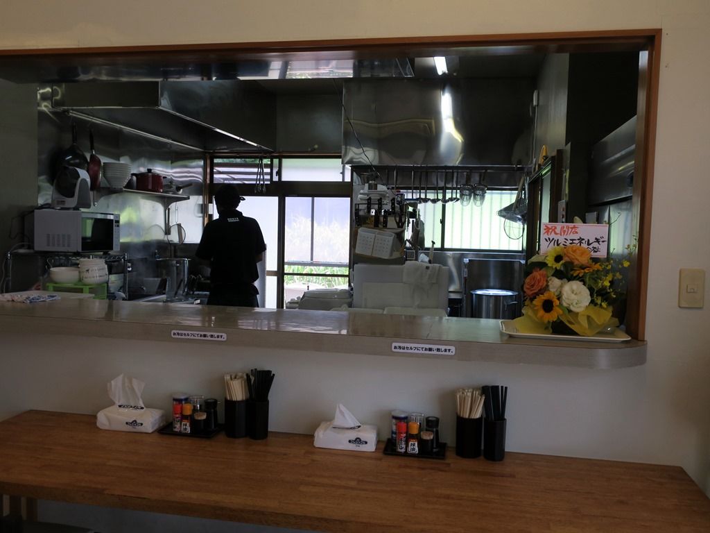 店内は、厨房前にカウンター3席、壁に向けたテーブルが10席(2席・2席・2 席・4席)。小上がりは閉鎖中。後客4と早開け効果で混雑回避。
