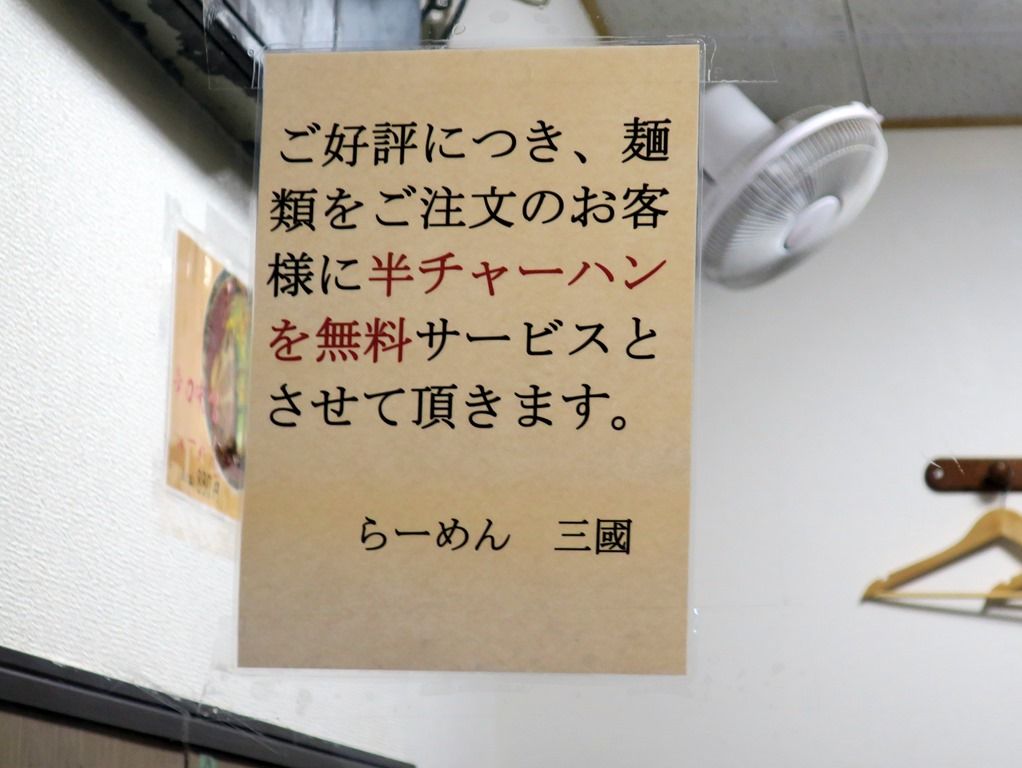 7/25まで麺類注文で炒飯無料でしたが、終了。変わって7/26からは半炒飯が無料。