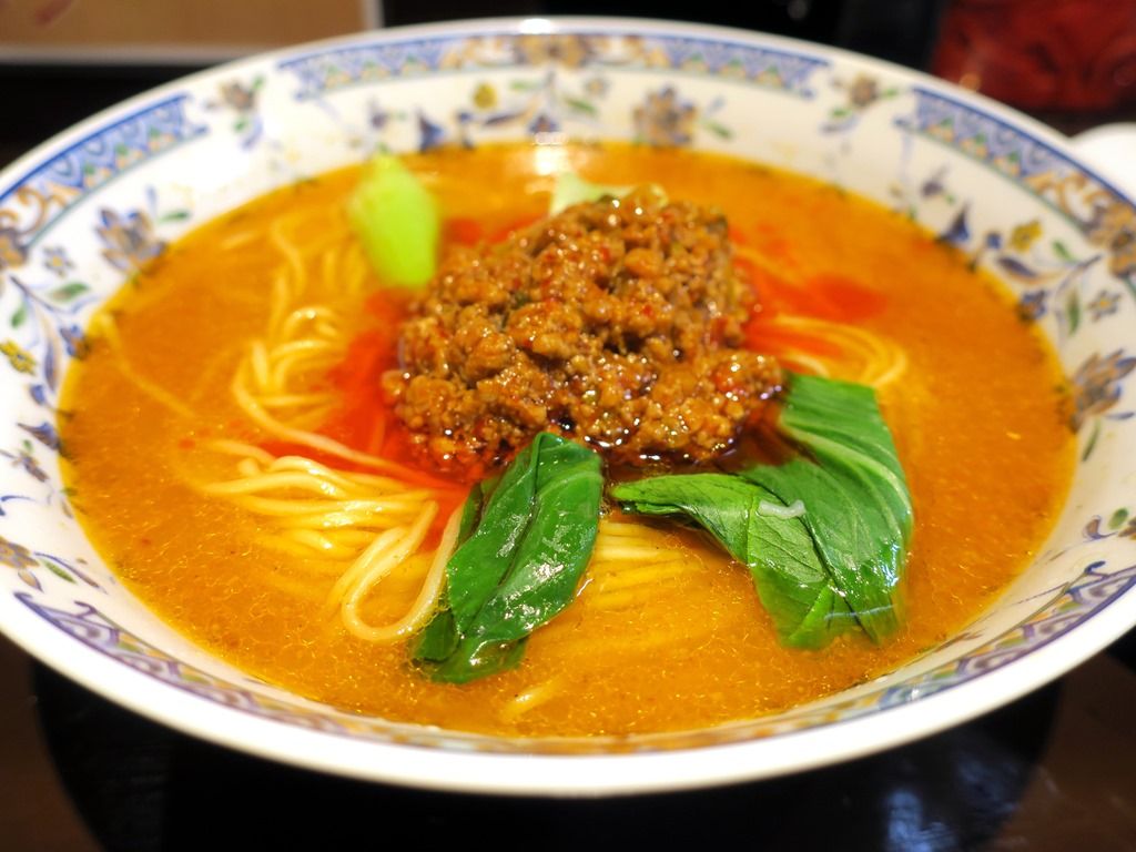 担々麺の具は肉味噌、小松菜。