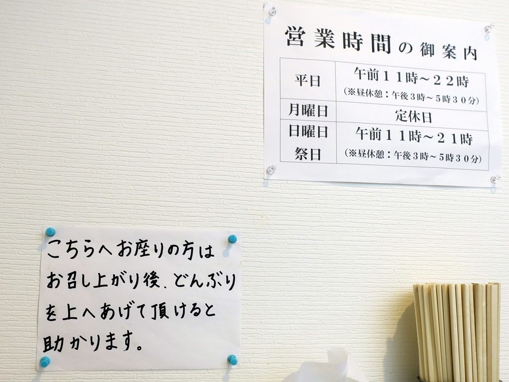 店内は、厨房前に逆L字型のカウンター6席。11:30頃到着で、先客2、後客4。厨房には店主さんワンオペ体制。