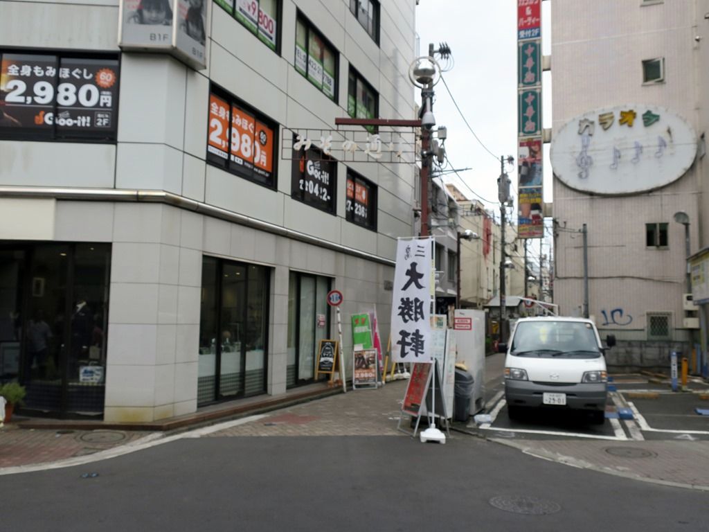 店の場所は、吉祥寺駅北口徒歩約3分。みその通り内。通りの入口には「三鷹大勝軒」の幟。