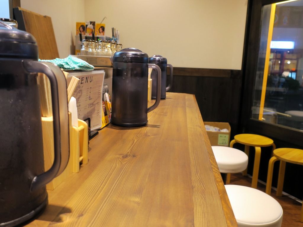 BGMはポップス。箸は割り箸。卓上調味料はミックスペッパー。