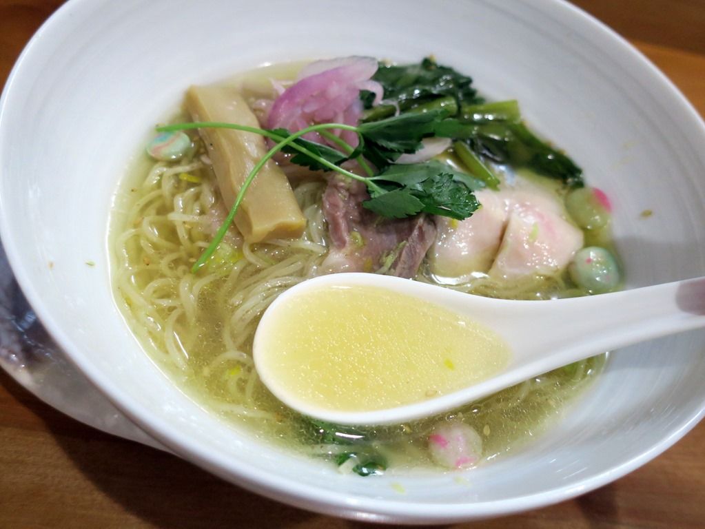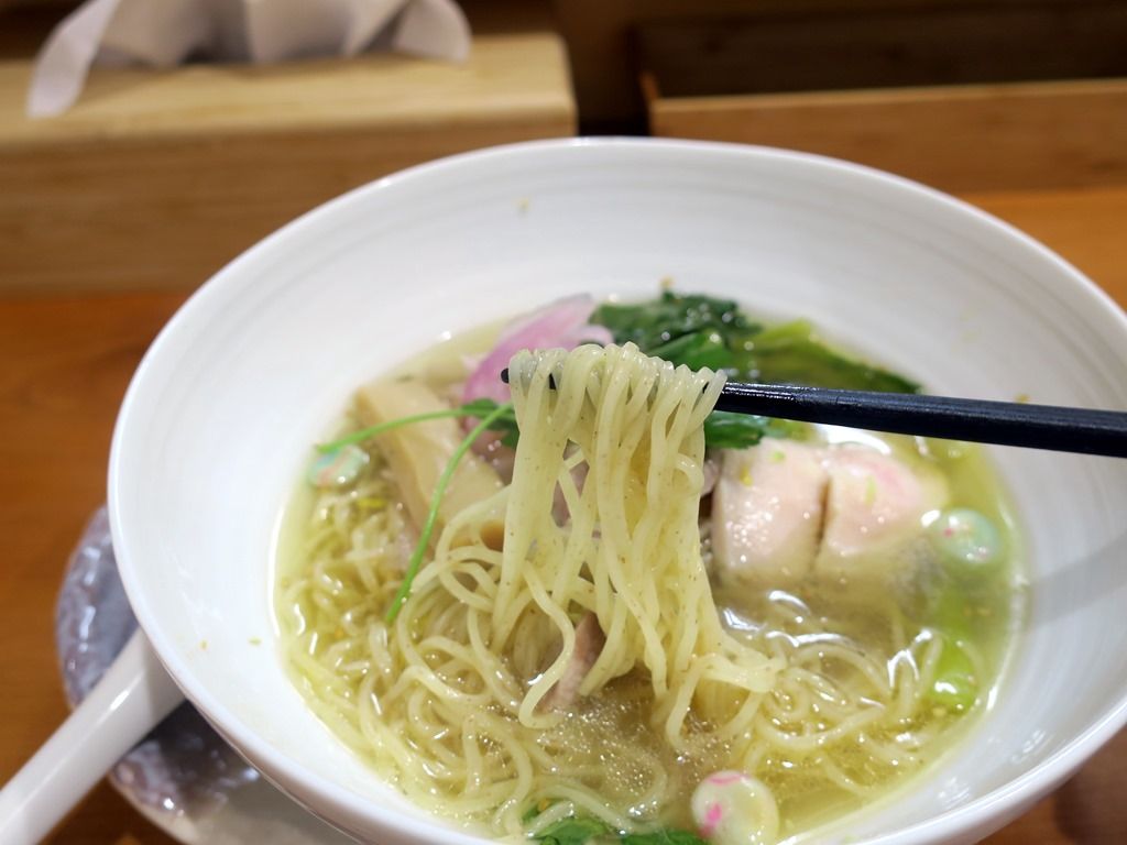 スープはさらさらの清湯塩味。ロット分を毎回小鍋で加熱する丁寧な調理。想定以上に鯛の風味がぶわっと来てビックリ!淡麗清湯ですが、鯛の出汁がとんでもなく分厚く出ています。麺魚や灯花は別格・異次元のクオリティですが、ブラッシュアップすれば近づけそうな素養と地力を感じます。これは驚き、すごく美味しい!
