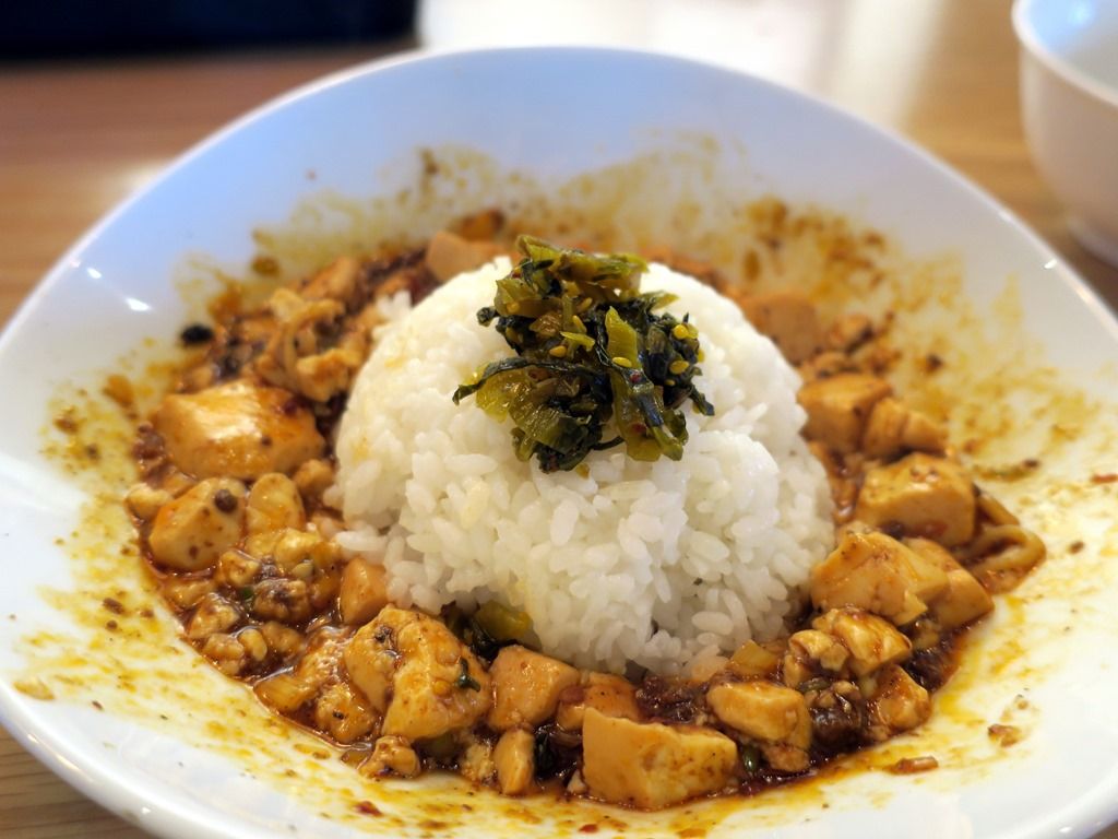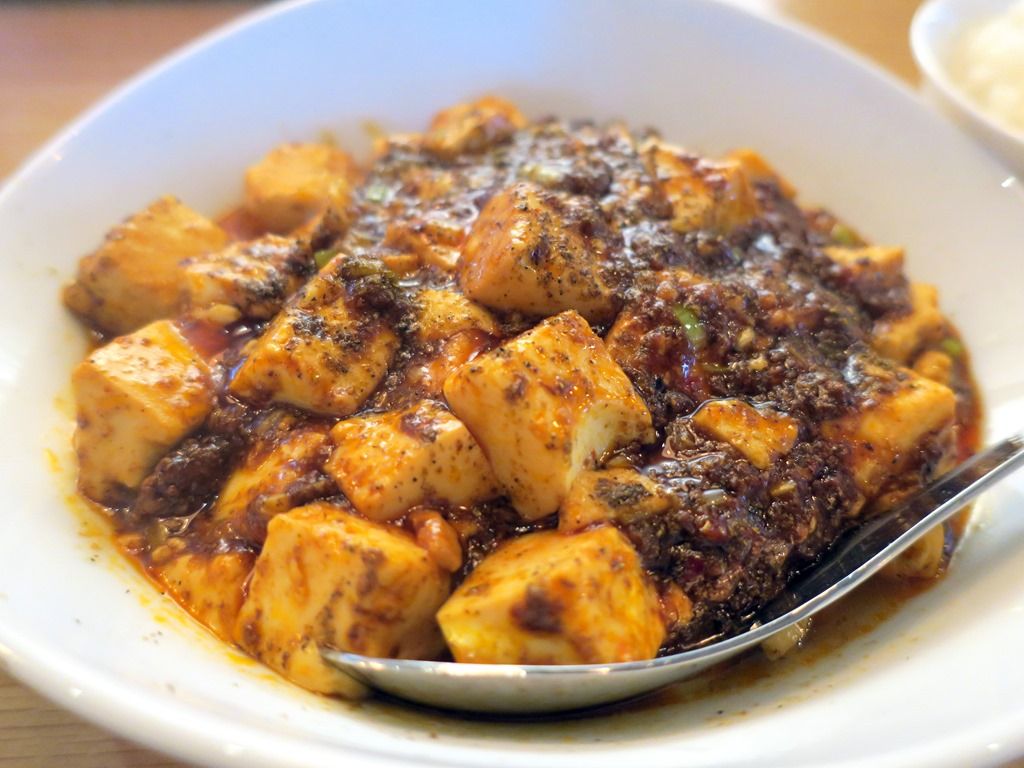 具は麻婆豆腐。この麻婆豆腐がとてつもなく旨くて、私的麻婆豆腐のトップ5入り確実。痺れ・辛さともに適度でそれほど強くはありませんが、効かせ方のバランスが絶妙。唐辛子や辣油、特に花椒が上質で香り・風味に酔いしれます。大きめカットの豆腐もいい感じ。麻婆豆腐に舌なめずり請け合い!