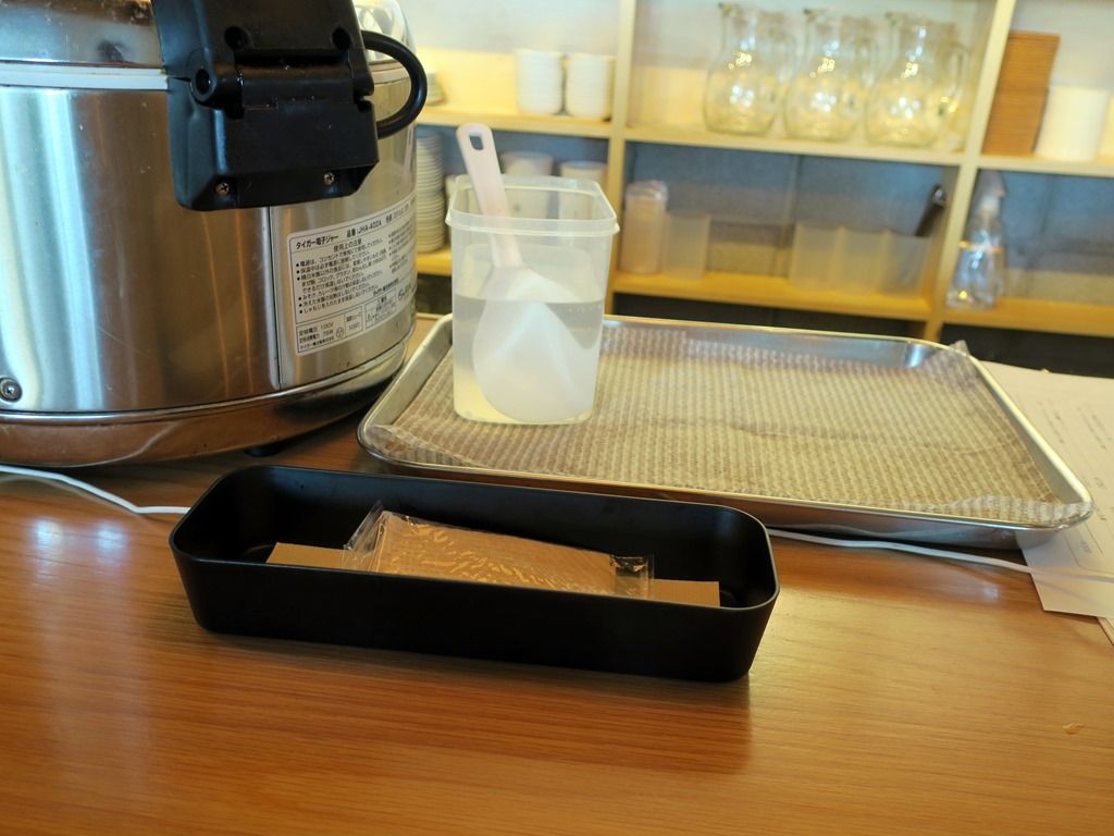 スタッフは厨房に店主さん、ホール担当男子の2名体制。厨房と客席は壁で仕切られ小窓で店主さんの顔は見えますが、手元は見えません。店主さんは忙しく動きながらも客席を良く見ていて、何かあるとすかさずフォローします。