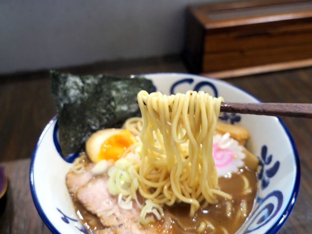スープは、すこしとろみのあるチョコレート色の動物魚介醤油味。「石ばし」は未食なのでなんとも言えませんが、まさに必勝軒の系譜を感じさせる堂々たる味わい。
