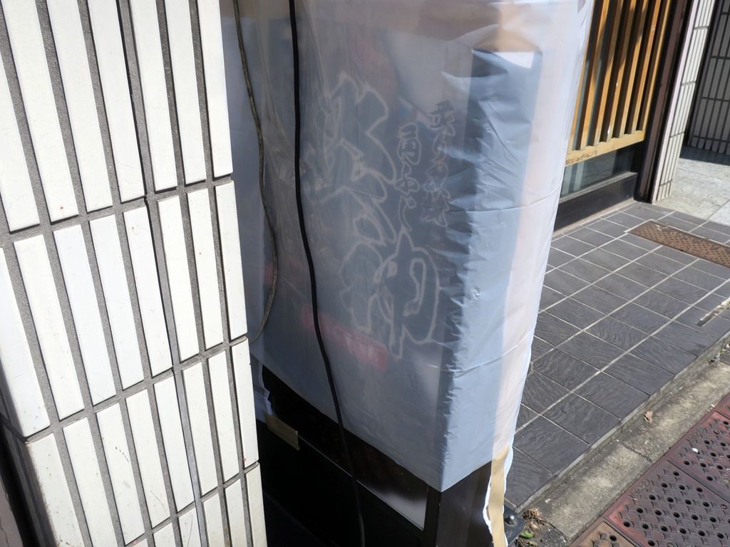 店の場所は、じゃぐらの3軒左隣。「今川」→「炎神」とこうじグループの店が入れ替わった物件で、今回もこうじグループからの出店。店頭にはビニールをかけられた炎神の立て看板が。