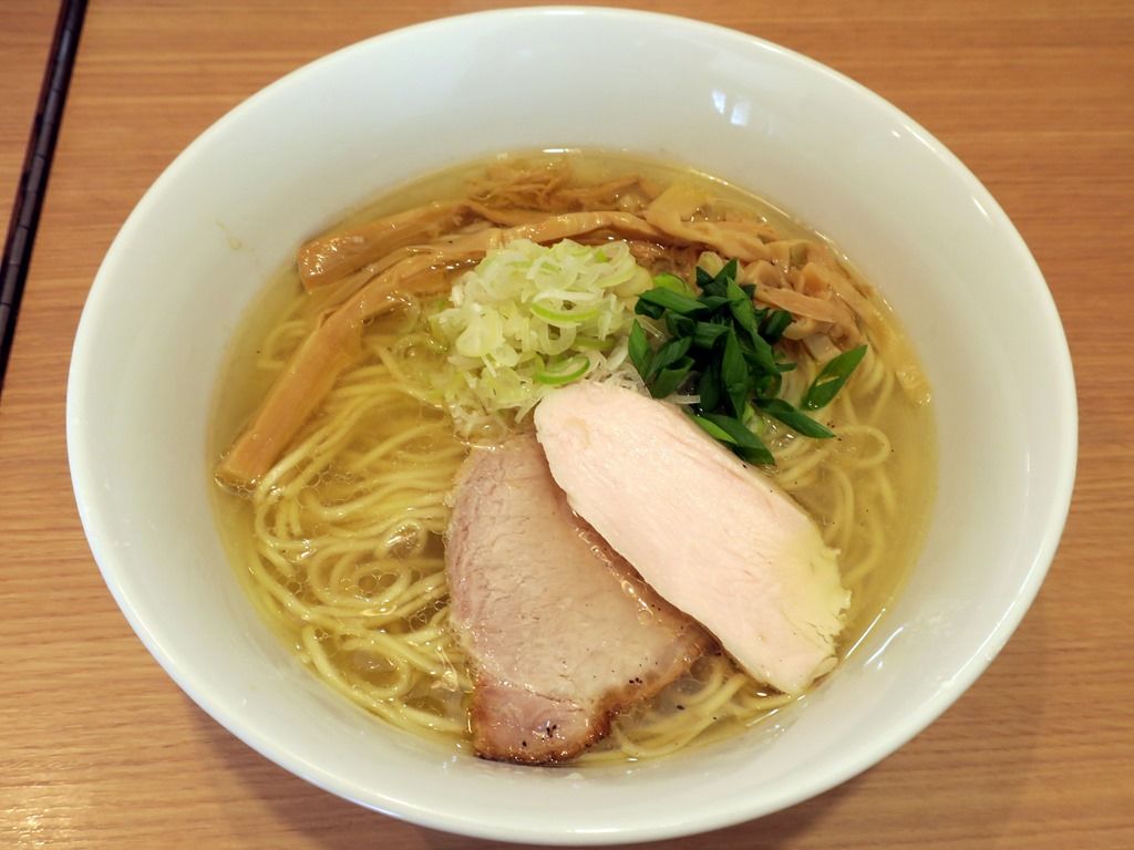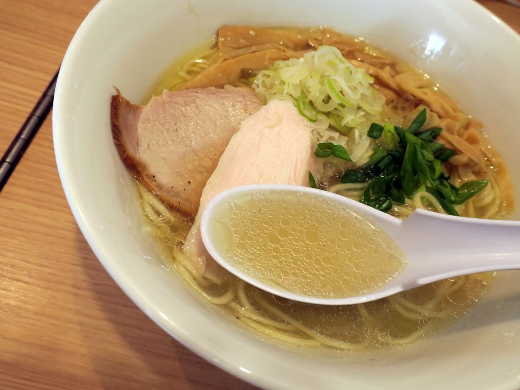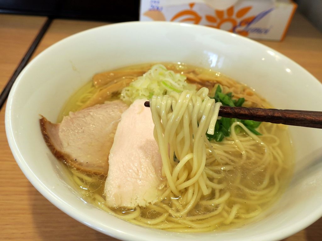 スープはさらさらの清湯塩味。キレッキレの鶏魚介で、まろやかな塩ダレの効果で出汁の良さと旨味がくっきり表出。奥行きのある立体的で分かりやすい構成で凄く美味しい!