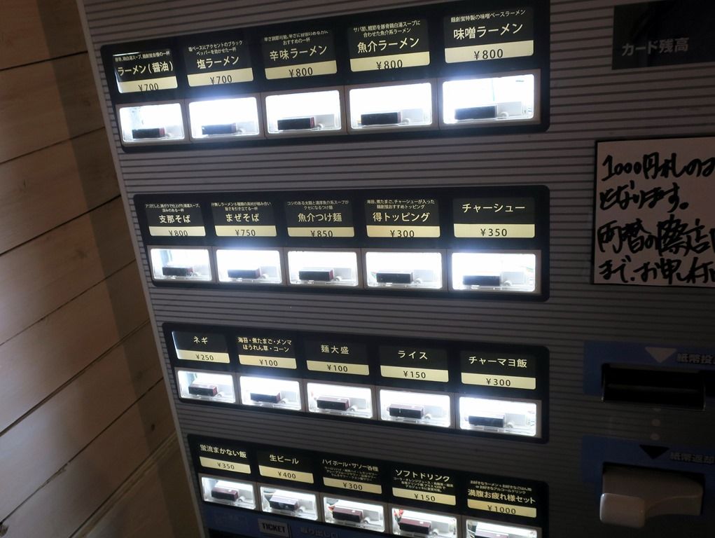 店の場所は、関内駅北口徒歩約4分、日本大通り駅徒歩約6分。「鳥虜」の跡地。入店するとまず券売機で食券購入です。