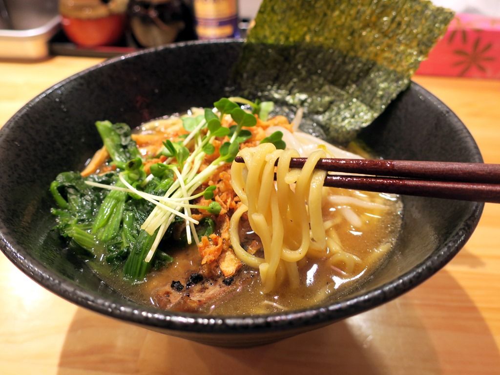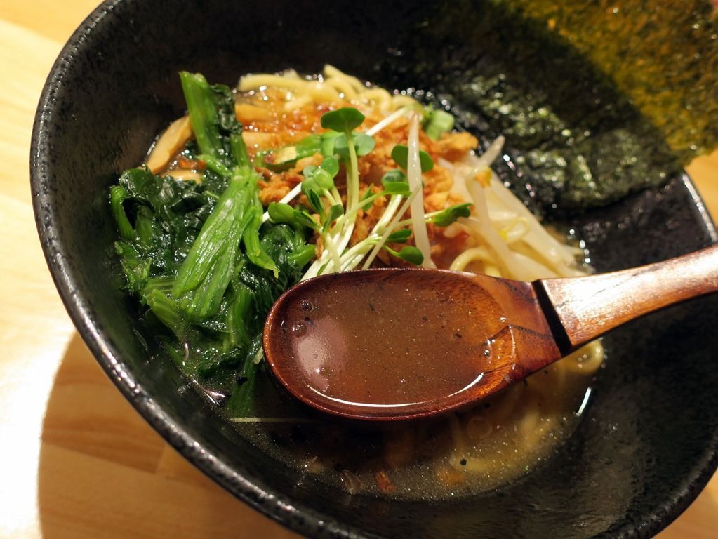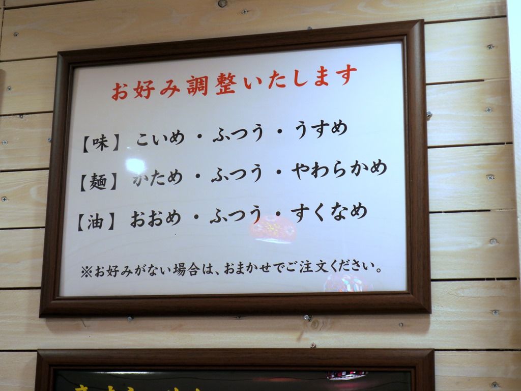 汁麺全品、味の濃さ、麺の固さ、油の多さを指定可能。オーダーは、券売機先頭左端の「ラーメン(醤油)」、カスタマイズはすべて「ふつう」で。