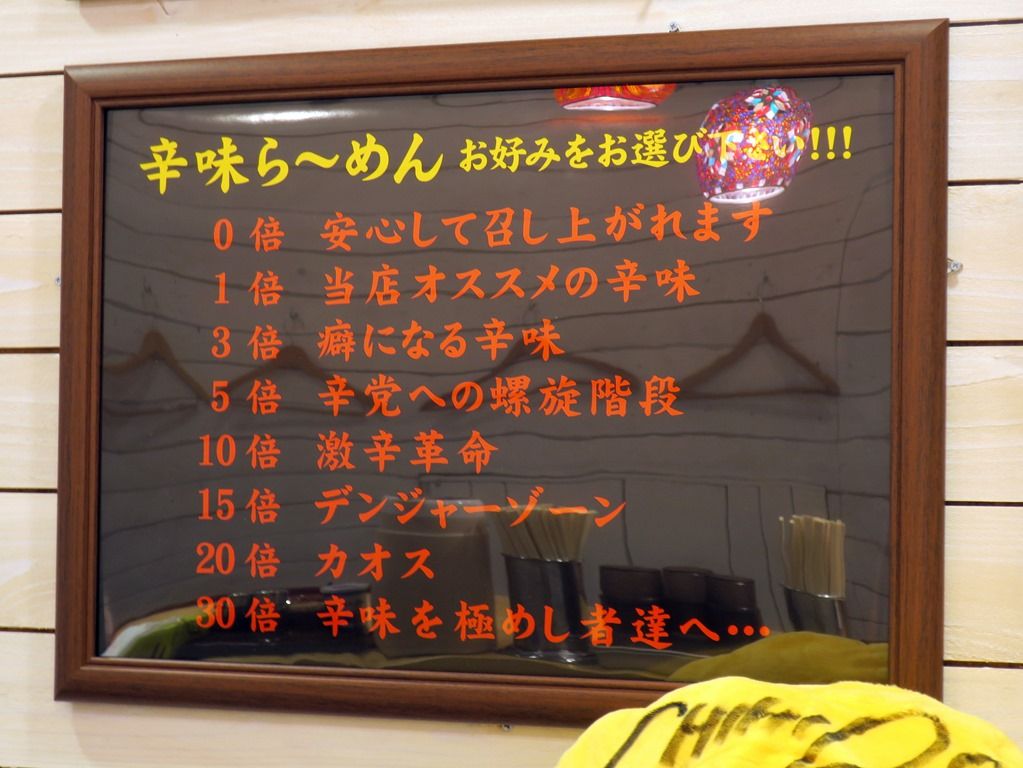 辛味ラーメンは0倍〜30倍まで辛さが選択可能。