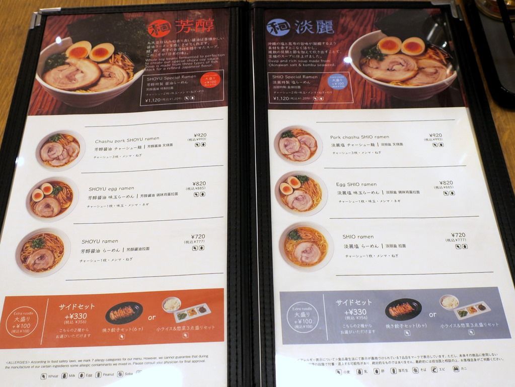 芳醇醤油らーめん720円、淡麗塩らーめん720円、