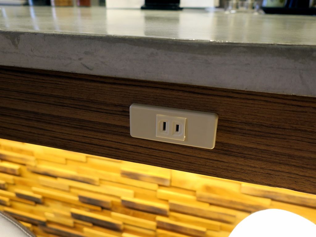 カウンターには各席1個ずつコンセント差し込み口が用意されています。どこでも充電可能w