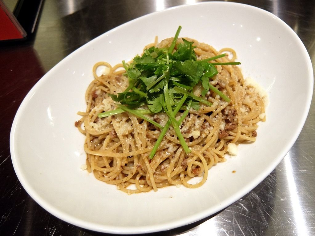 2017年3月3日オープン。池袋東口の同名店の2号店。食べログによるとランチに担々麺があったので、近くの仕事帰りに立ち寄り。ですが、夜はやってませんでした。ってことで、今回はラーメンではなく中華風パスタです^^;