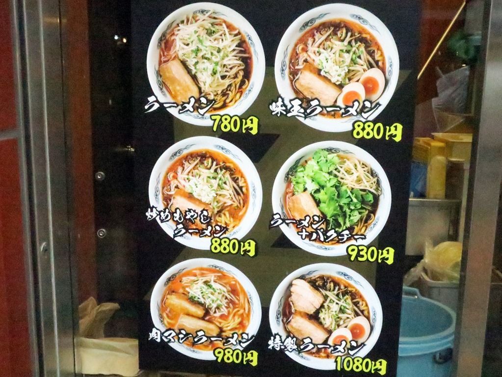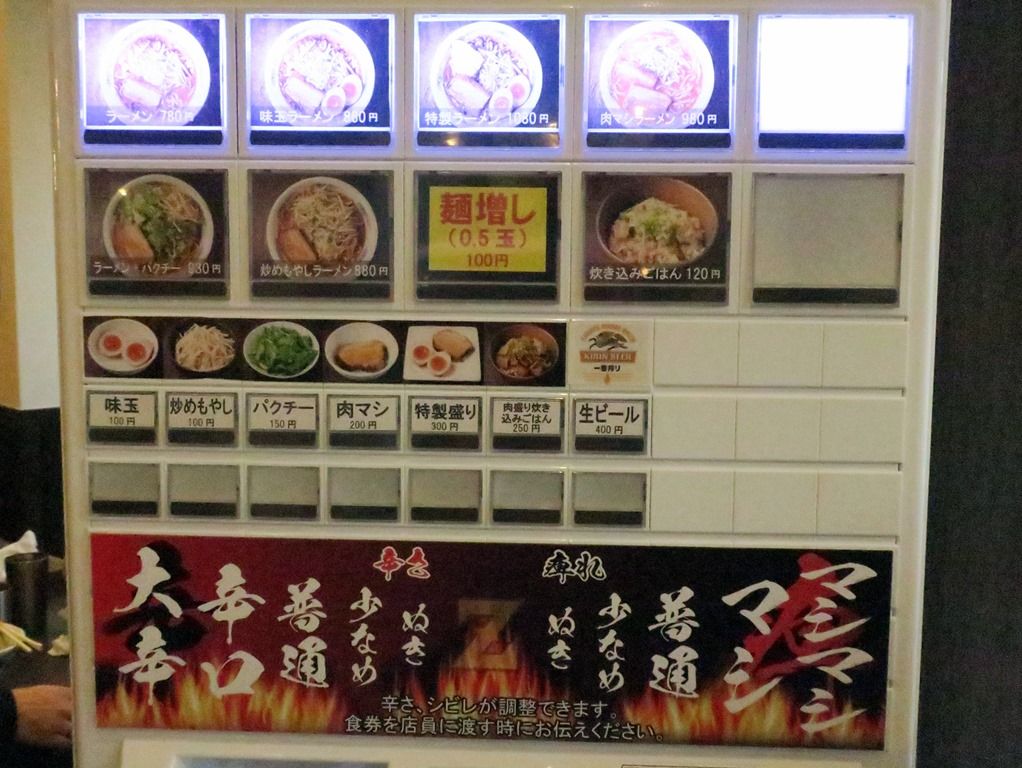 主なメニューは、ラーメン780円、炒めもやしラーメン880円、炊き込みごはん120円、肉盛り炊き込みごはん250円、他。オーダーは券売機先頭左端の「ラーメン」で。