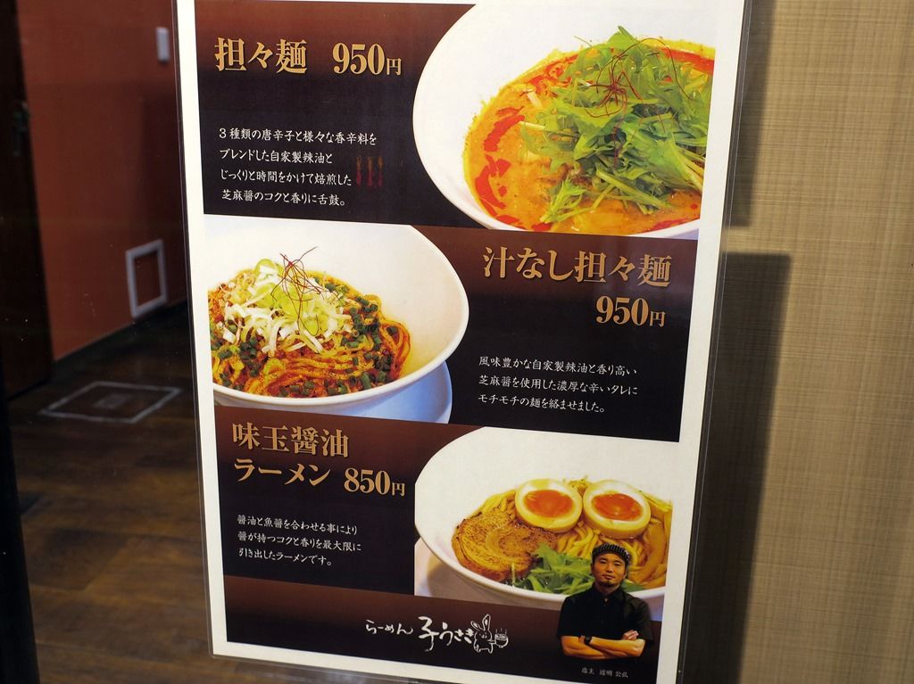 主なメニューは、醬油ら〜麺750円、担々麺950円、汁なし担々麺950円、他。