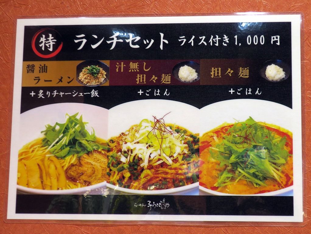 ランチセットは担々麺・汁なし担々麺がご飯付き、醤油ら〜麺が炙りチャーシュー飯付きで各1000円。大塚では担々麺を経験したので、今回は醤油ら〜麺で。
