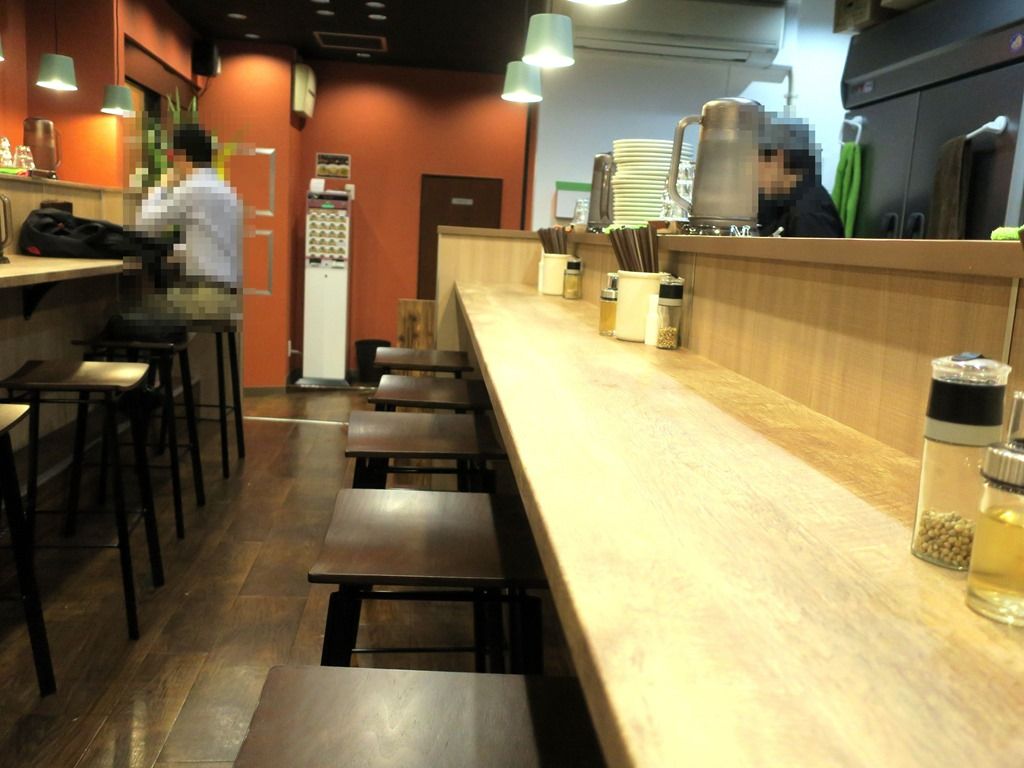 店内は、厨房前に真っ直ぐなカウンター6席、窓に向かったカウンター7席、4人卓x1、2人卓x1。19:40頃到着で、先客2、後客1。スタッフは男性3名。