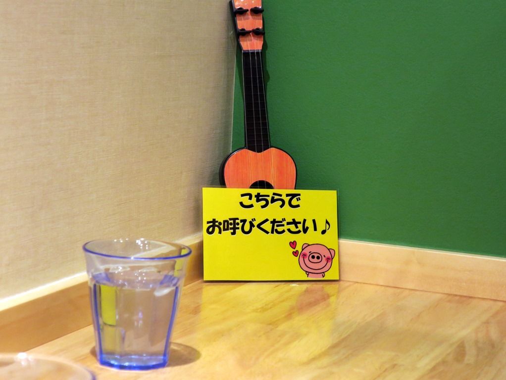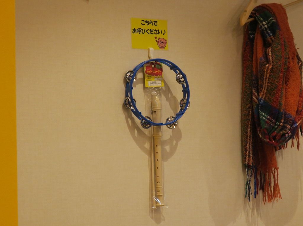 店内いたる所に、「こちらでお呼び下さい」とミニギターやタンバリン、メガホンなどが配されています。ってか、リコーダー吹いてスタッフ呼ぶって(^O^;)
