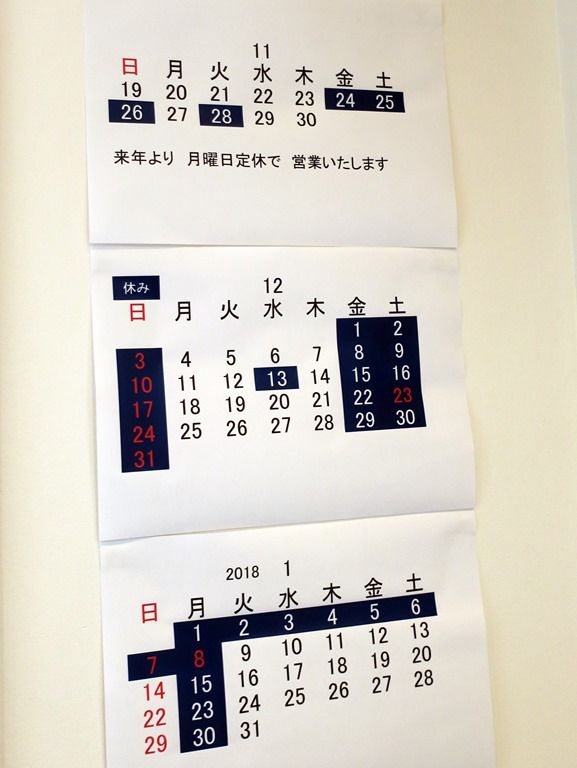 年内は金土日が休みで、年明けから月曜定休。休業日が変則的なので要注意!