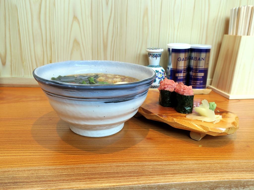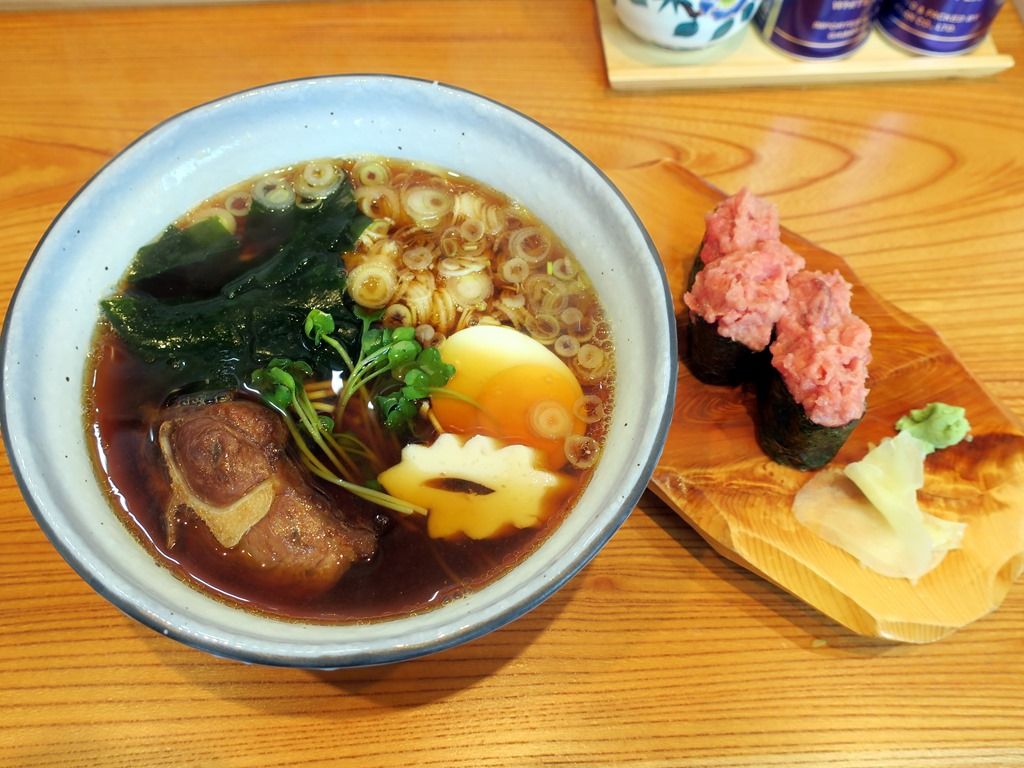そして待つことしばし、「マグロラーメン醤油」&「中落ち軍かん」完成で〜す♪