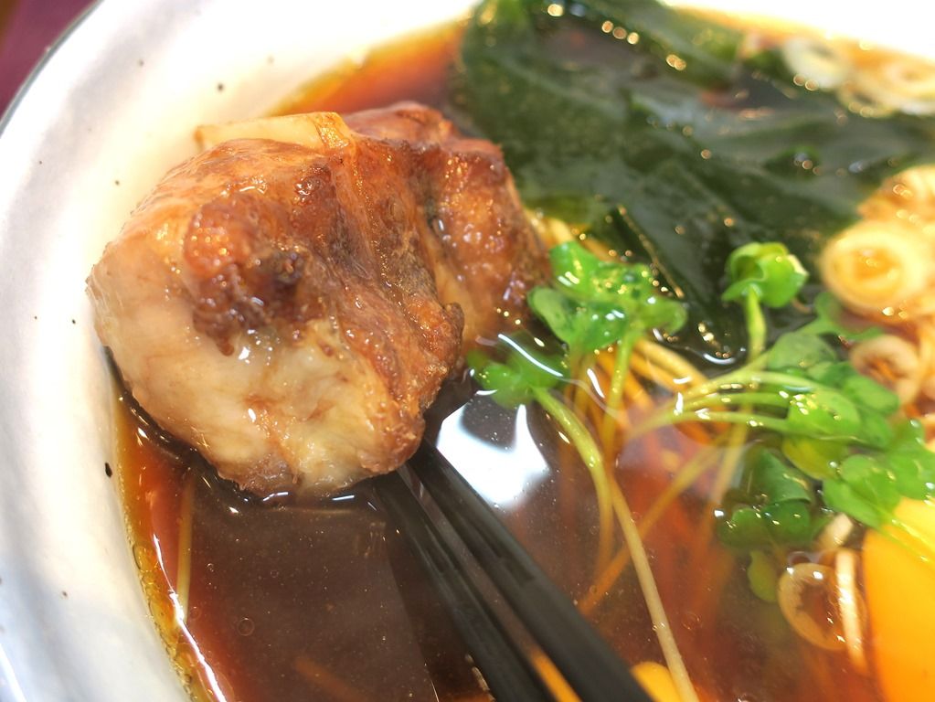 特筆すべきは骨つきマグロのカマや焼きチャーシューで、大きめのお稲荷さん位のジャンボサイズ。味ももちろん最高で、いつもと違ったマグロが味わえます。チャーシューを崩すとスープにもマグロ風味が移って味変効果も。