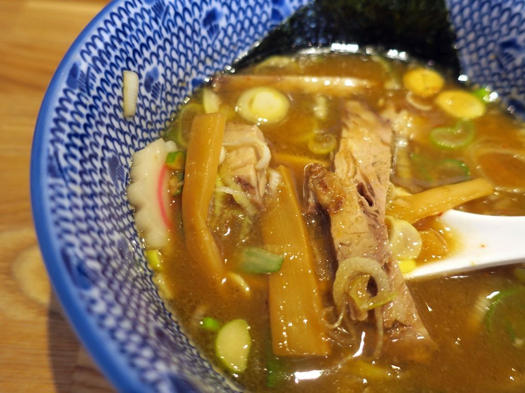 つけ汁は軽い粘度のある動物魚介の醤油味。シャバ目でちょっとしょっぱ目ですがそのままでも飲める感じ。