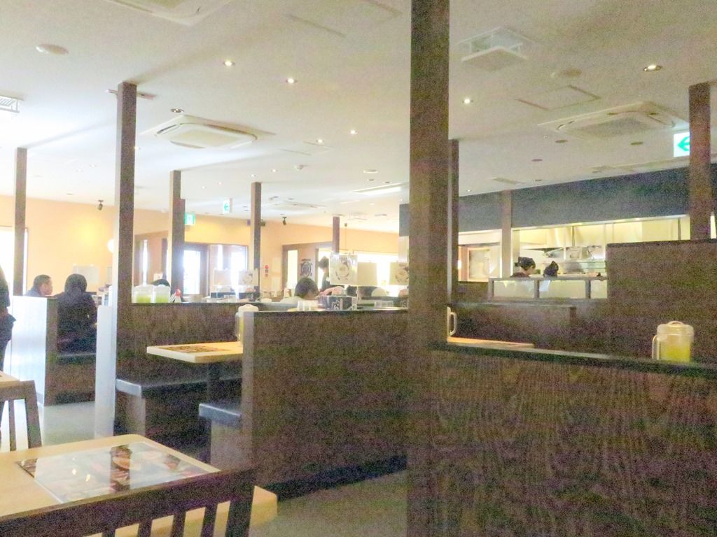 後客多数。スタッフ10名くらいかな。とにかくいろいろビッグスケール。ですが、特に接客がキビキビハキハキ、とても親切丁寧で、外食チェーンとしてはずば抜けていいかも!