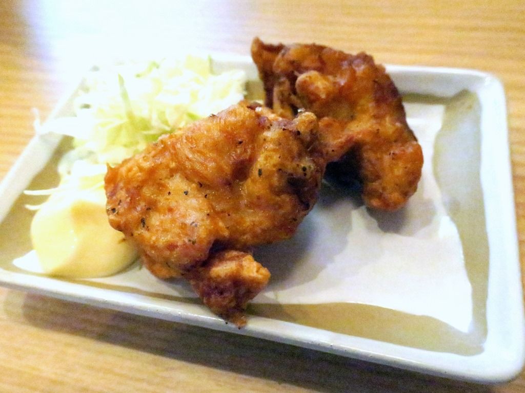 セットの唐揚げ。外はパリッと、中はジューシー。