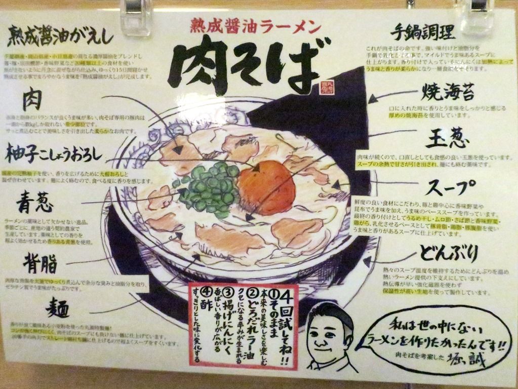 主なメニューは、肉そば650円、肉そばつけ麺880円、たっぷり野菜ちゃんぽん880円、磯海苔塩ラーメン680円、熟成味噌ラーメン780円、他。