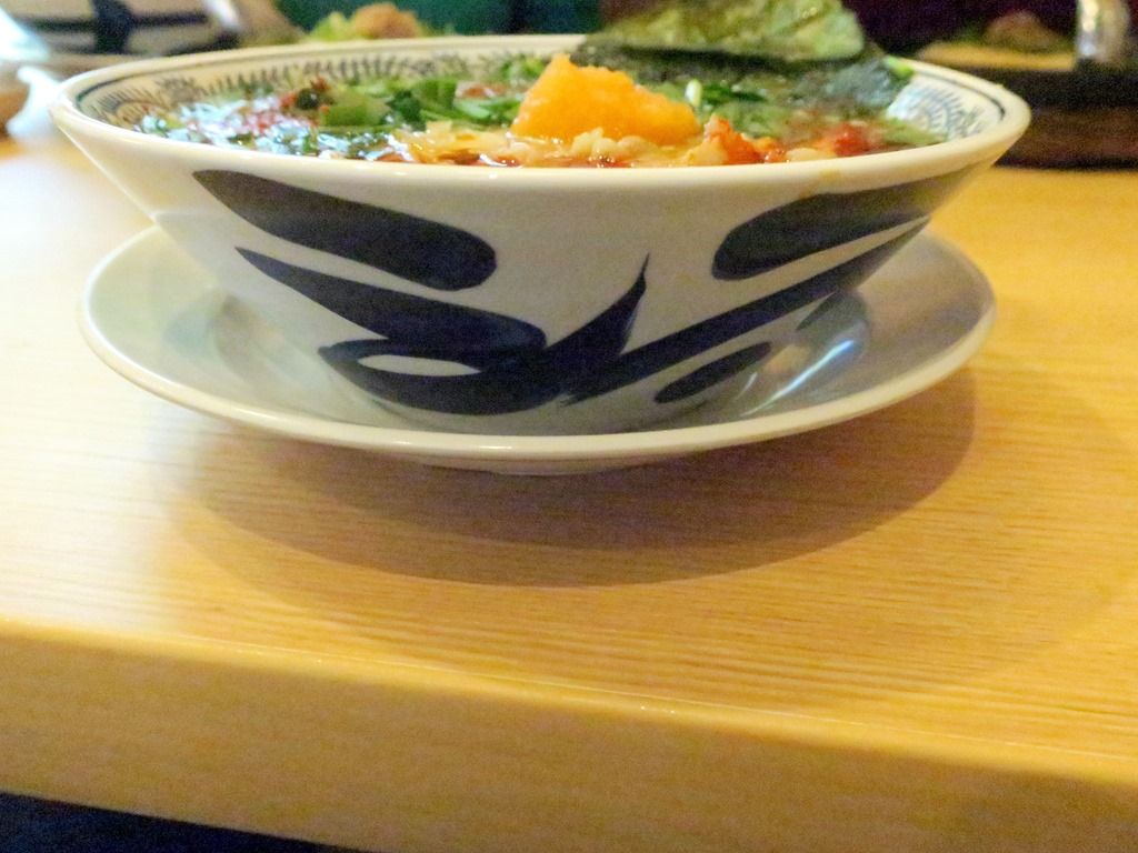 具は豚肉、柚子胡椒おろし、海苔、玉ねぎ、青ねぎ、背脂。