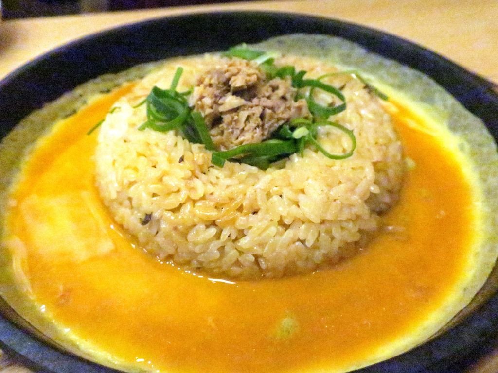 溶き卵を鉄板に回し入れて高熱で瞬間的にジュワッと玉子が固まるパフォーマンスを卓上お客さんの目の前で演出。炒飯の味もいいです。