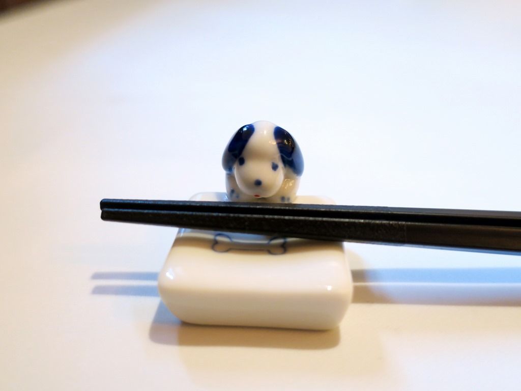 BGMはラジオ。箸は洗い箸でエコ仕様。卓上調味料は無し。箸置きが可愛い!