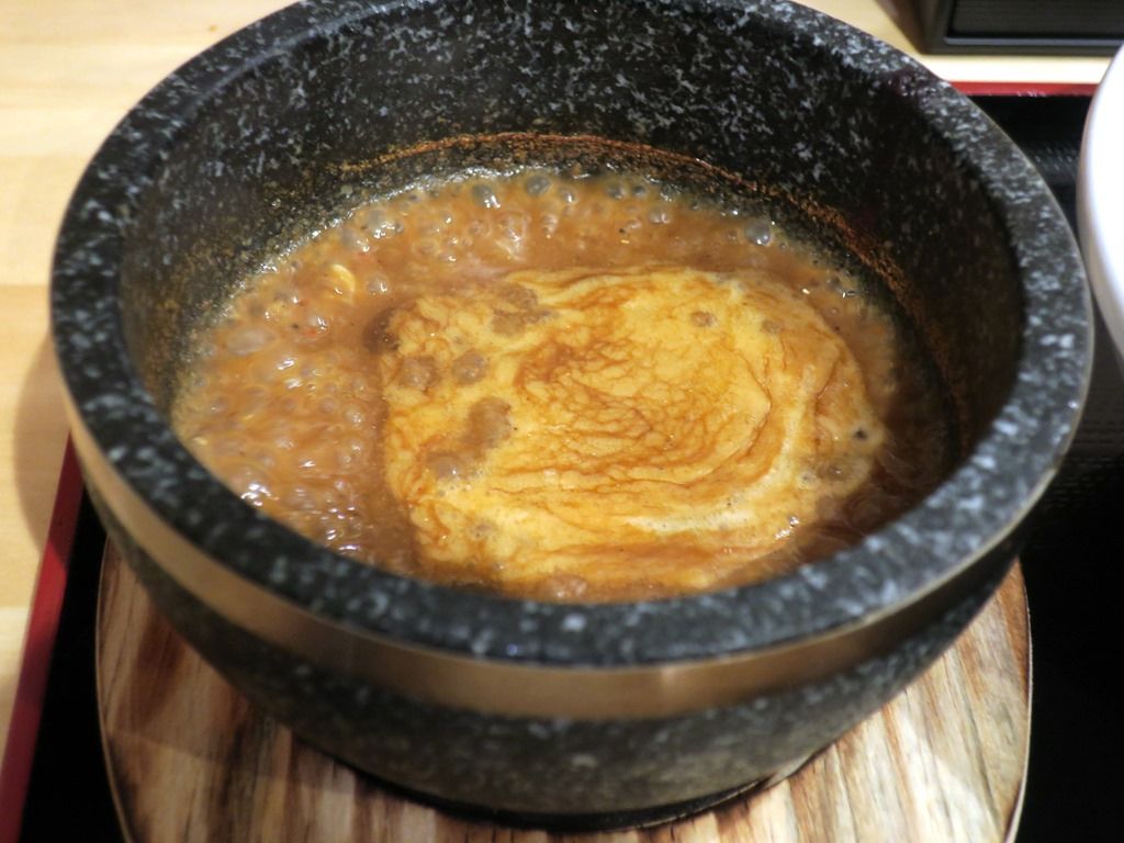 猛烈に沸騰するつけ汁で着丼。ポスターによると激熱300℃とのことですが、火山の爆発的な沸騰と比べるとおとなし目で、温度もう少し低めな感覚。
