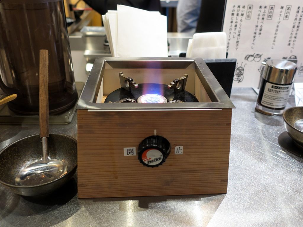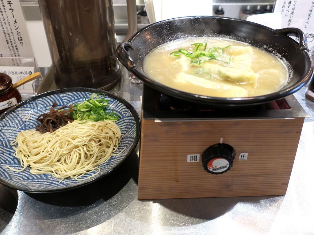 途中で麺を投入!餃子を食べ終えてから麺をとのアナウンスですが3個食べて我慢出来ずw 餃子をあらかた食べ終える頃にはスープが冷めちゃってますが、スタッフさんにお願いすればすぐに点火してくれます。沸騰が続くと美味しくなくなるそうで、煮立ったら止めて、冷めたら気軽に声をかけて下さい出そうです。いや〜親切や〜!