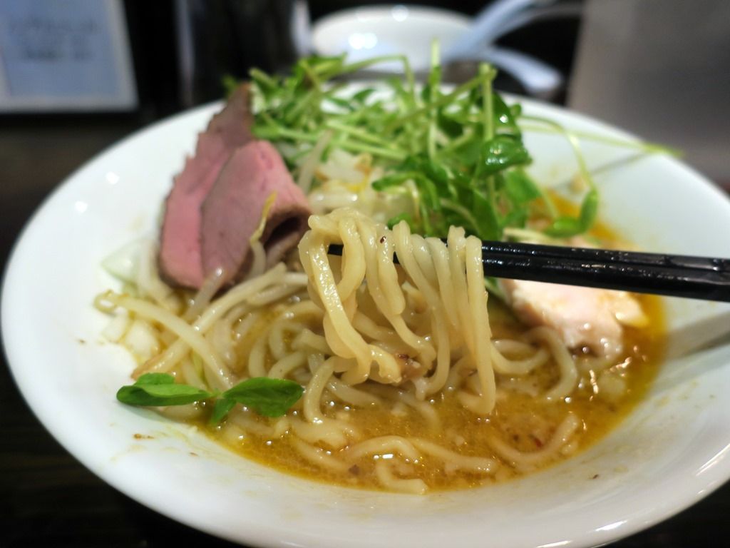麺は中太縮れタイプ。モッチリとしたコシのある麺で、味わい深いスープといいハーモニーを奏でています。