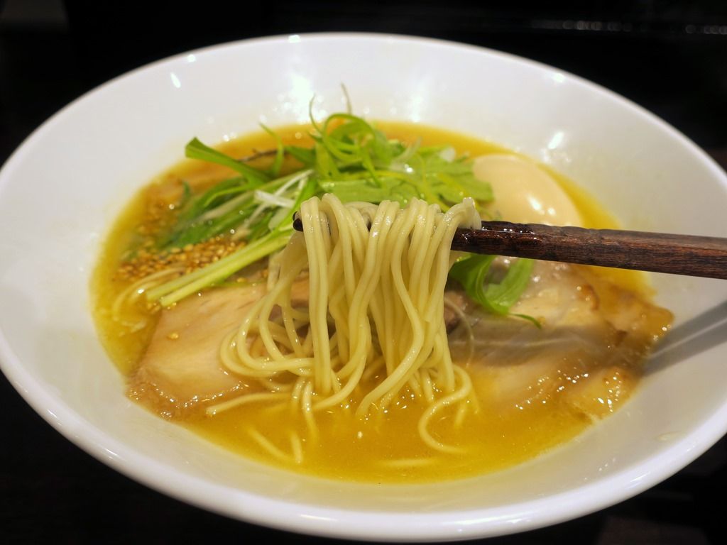三河屋製麺製の麺は、ストレート極細タイプ。食感は見た目以上に超細。低加水ですがそこまでザクザクではなく、細麺なのに存在感があります。