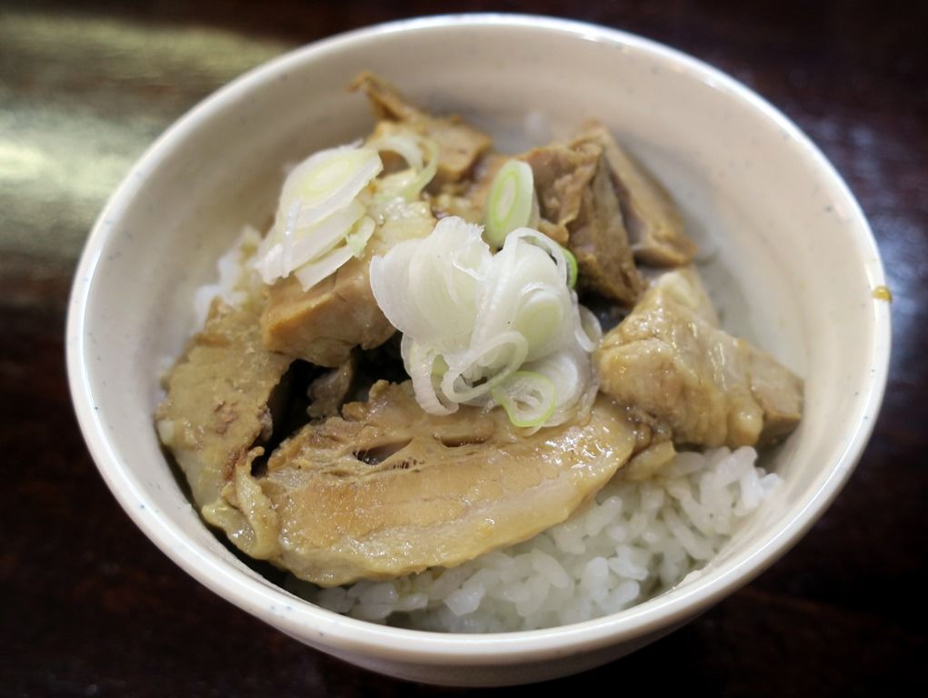 「チャーシュー丼」。ラーメンのチャーシューは女将さん?が注文毎に冷蔵から塊を出してスライス後レンチン、温まったところで麺にトッピングで、これによってかとろけるような食感に。