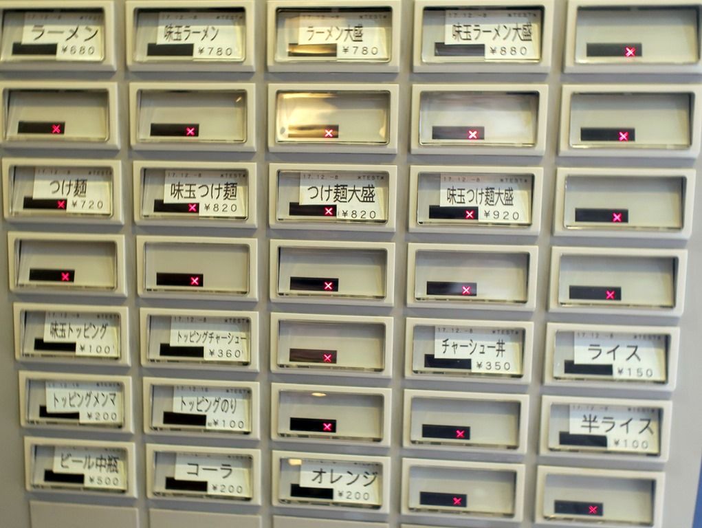 定刻に店主さん自ら暖簾をかけてオープン。入店すると、まず券売機で食券購入です。