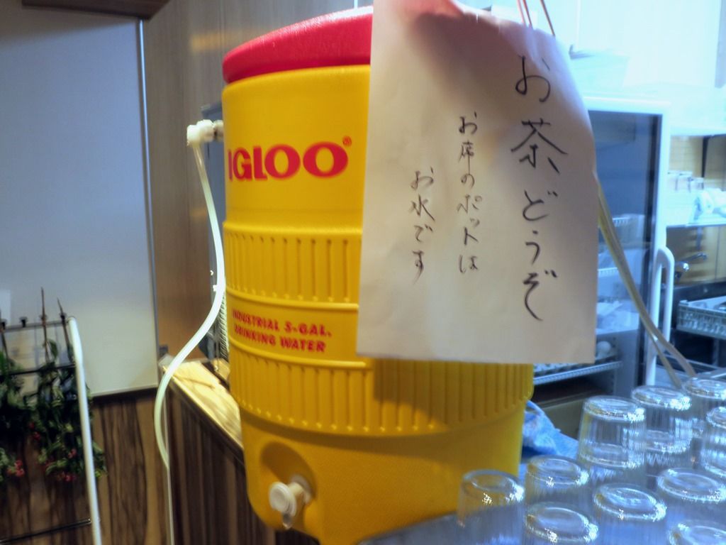 給水タンクのお茶は冷麦茶かな。席のポットは冷水なので、お茶が入りような方は出入口近くのタンクを利用。