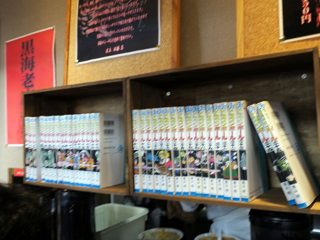 店内中央カウンター上の書棚には、ドラゴンボール42巻がズラ~リとディスプレイ。
