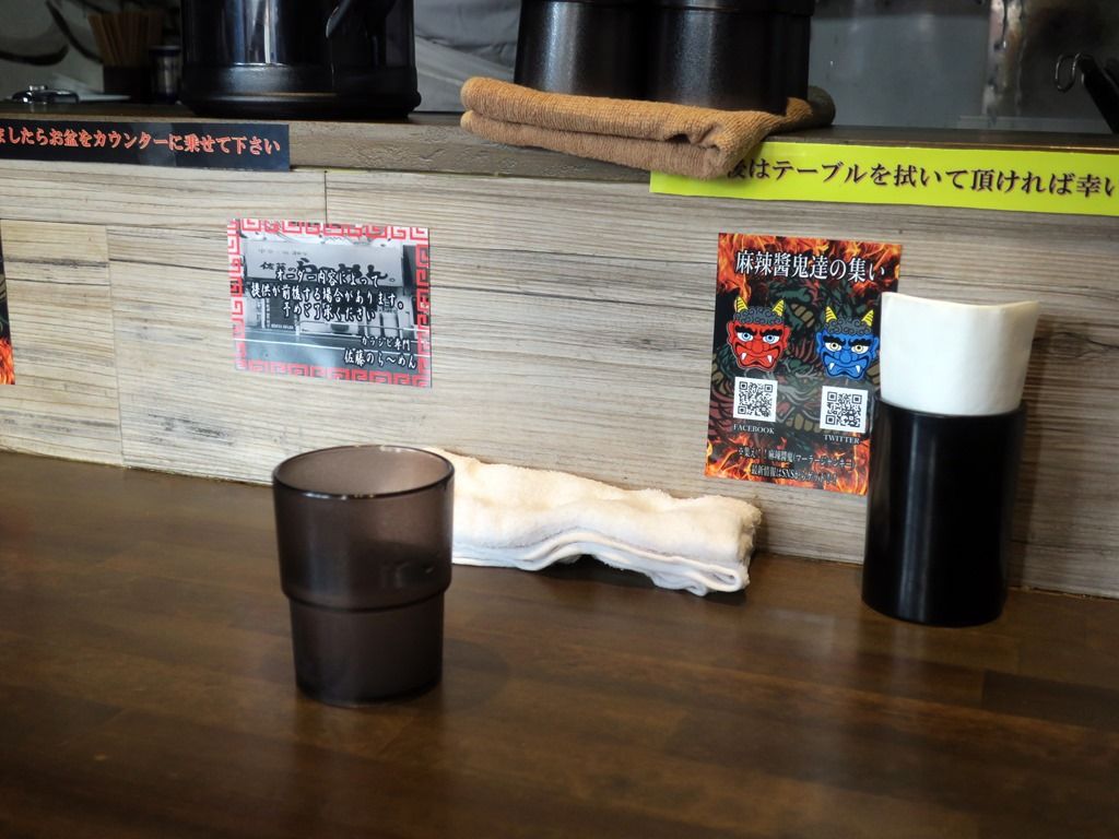 スタッフは全員男性で、厨房に店主さん、接客担当の方、ダンボール紙に激辛シビレラーメンと書いて、ヒッチハイクよろしく国道で車に向かって紙を掲げるプロモーション担当の方3名体制。