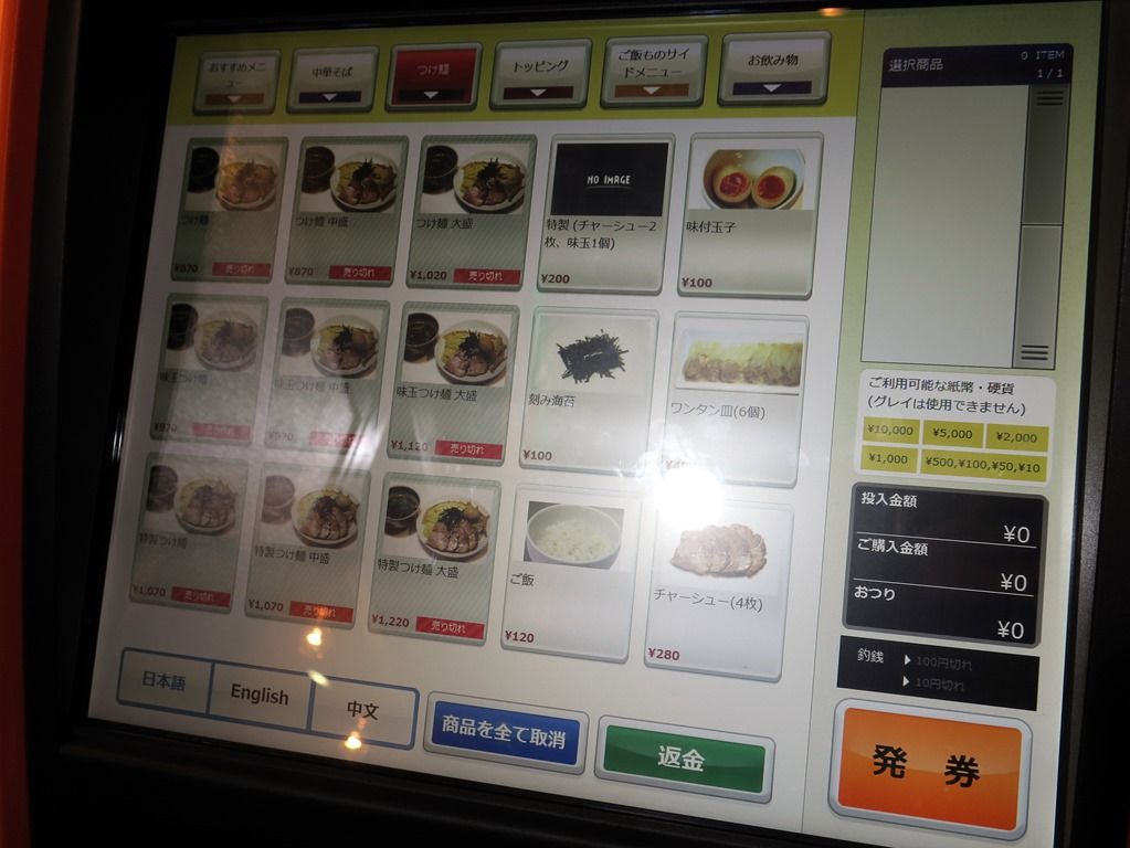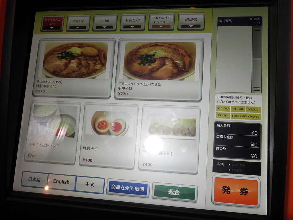 入店すると、まずタッチパネル式券売機で食券購入です。