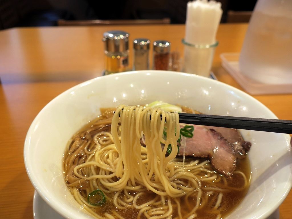 スープはさらりとした清湯醤油味。ラードでしょうか、多めの香味油に煮干しがガッツリ。まさに永福系っぽい仕立てですが、永福系よりも煮干し強烈。清湯でここまでやるかってくらいインバクがあって凄く美味しい!ただ、汁多めの汁無し?って位スープが少ないのがちょっぴり残念。