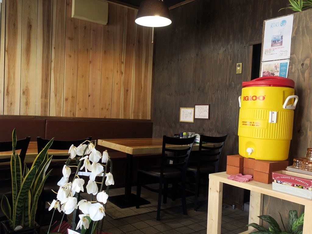 店内は、窓に向かったカウンター8席、4人卓x2。
