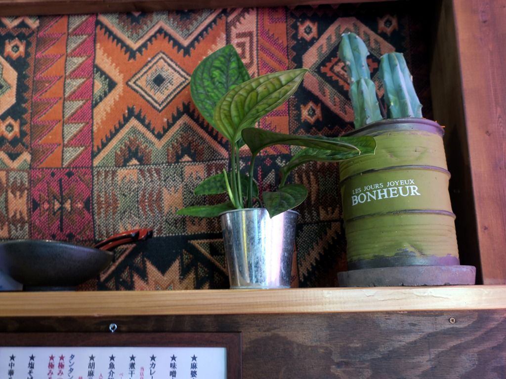 BGMは地元FM NACK5。箸は割り箸。卓上調味料・薬味は、酢、GABAN花山椒、高菜漬。