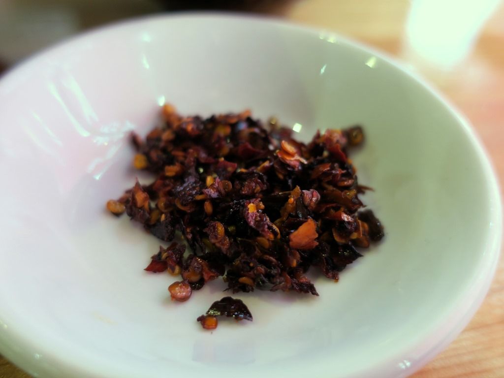 別皿で提供は食べるラー油の具。あとでお好みで混ぜて下さいとのこと。