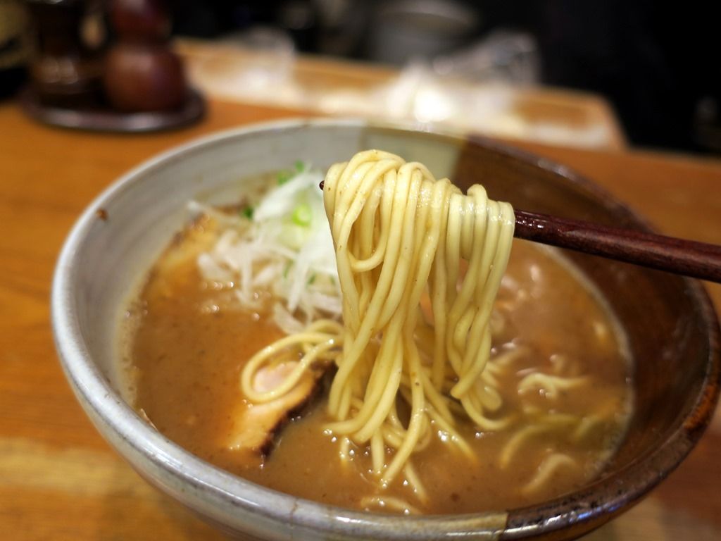 スープはとろっとクリーミーな白湯味噌味。豚鶏の動物性に魚介のWスープ。濃厚豚骨魚介醤油味のパイオニア的一杯ですが、重さや野暮ったさ、ベタツキ感や妙な甘さはなく後味は意外なほどスッキリ。メニュー説明にあった「味噌だけどやっぱり渡なべだね」をまさにストレートに具現した一杯。そして寒風吹きすさぶ寒い日でしたが、身体の芯からポカポカ温まりす。ほっこりとハート&ボディウォーミングな一杯でとってもと美味しい!