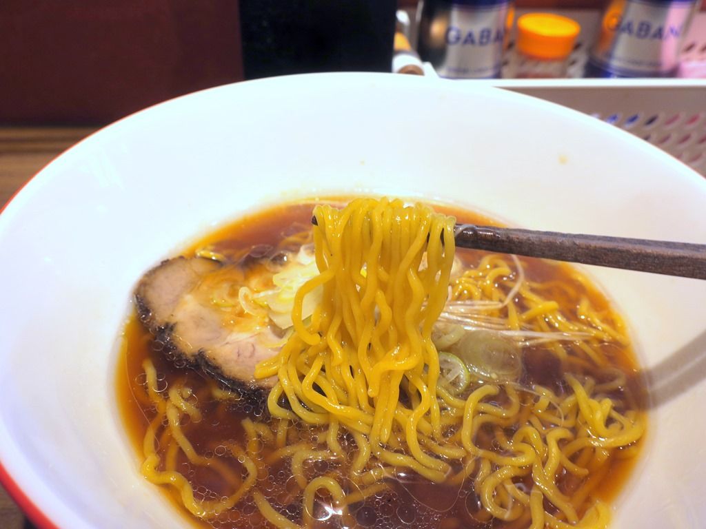 麺は中細縮れタイプ。キッチンタイマーは35秒と1分10秒でしたので、味噌は中太麺かも。チュルチュルっと啜りやすい麺で、抜群の食べ易さ。